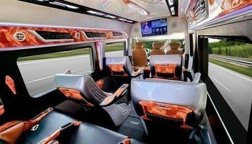 Đây là lựa chọn phổ biến nhất cho các nhóm nhỏ, gia đình hoặc công ty muốn trải nghiệm sự tiện nghi và riêng tư. Với 9 ghế ngồi rộng rãi, bọc da cao cấp, hệ thống đèn LED nội thất sang trọng, TV màn hình lớn và minibar, bạn sẽ có một không gian di chuyển không khác gì một phòng khách di động. Các dòng xe như Ford Transit Limousine hoặc Hyundai Solati Limousine được độ lại hoàn toàn, mang đến trải nghiệm thượng đỉnh.